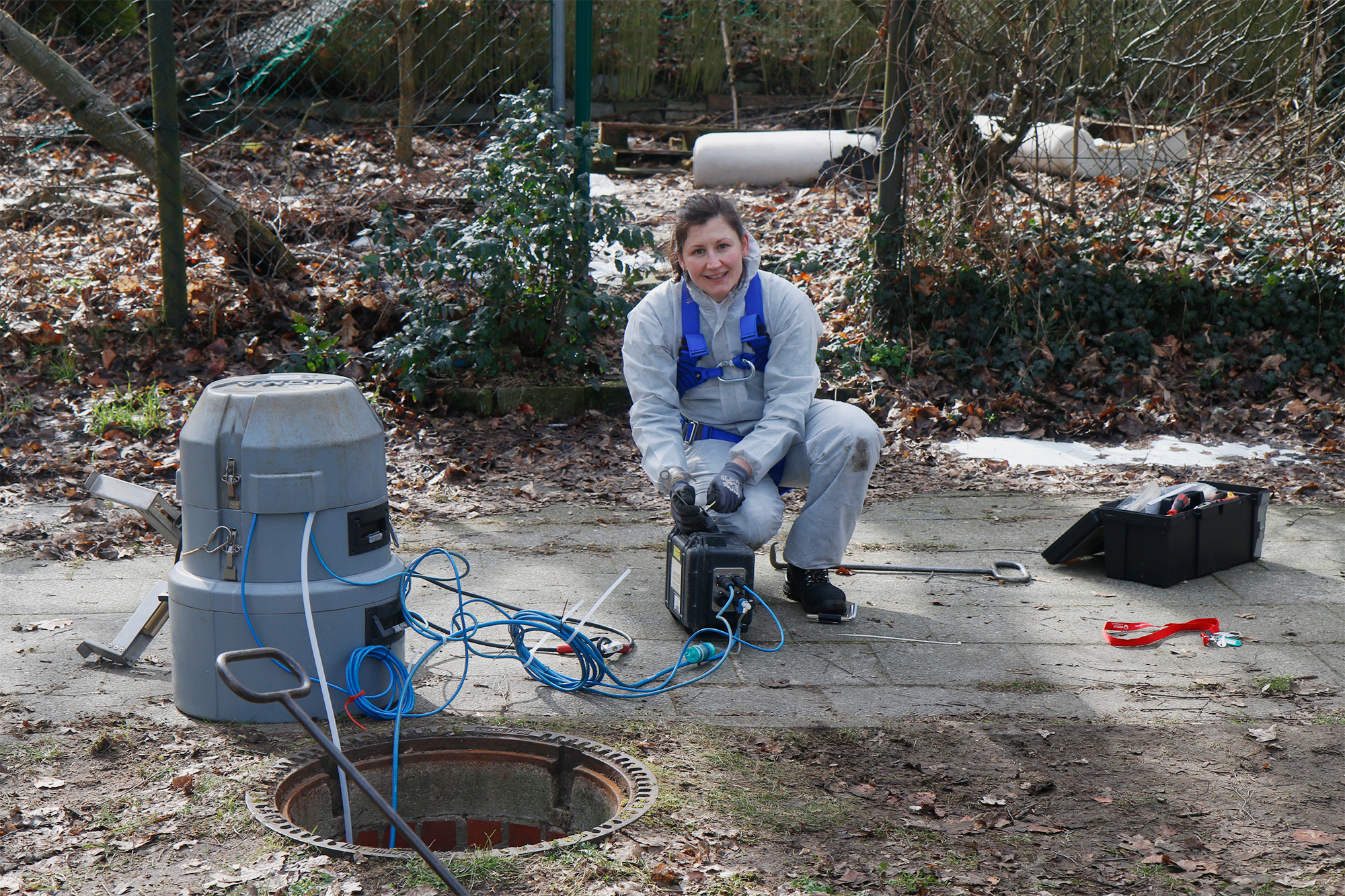 Aufbau einer Messstelle im Regenkanal