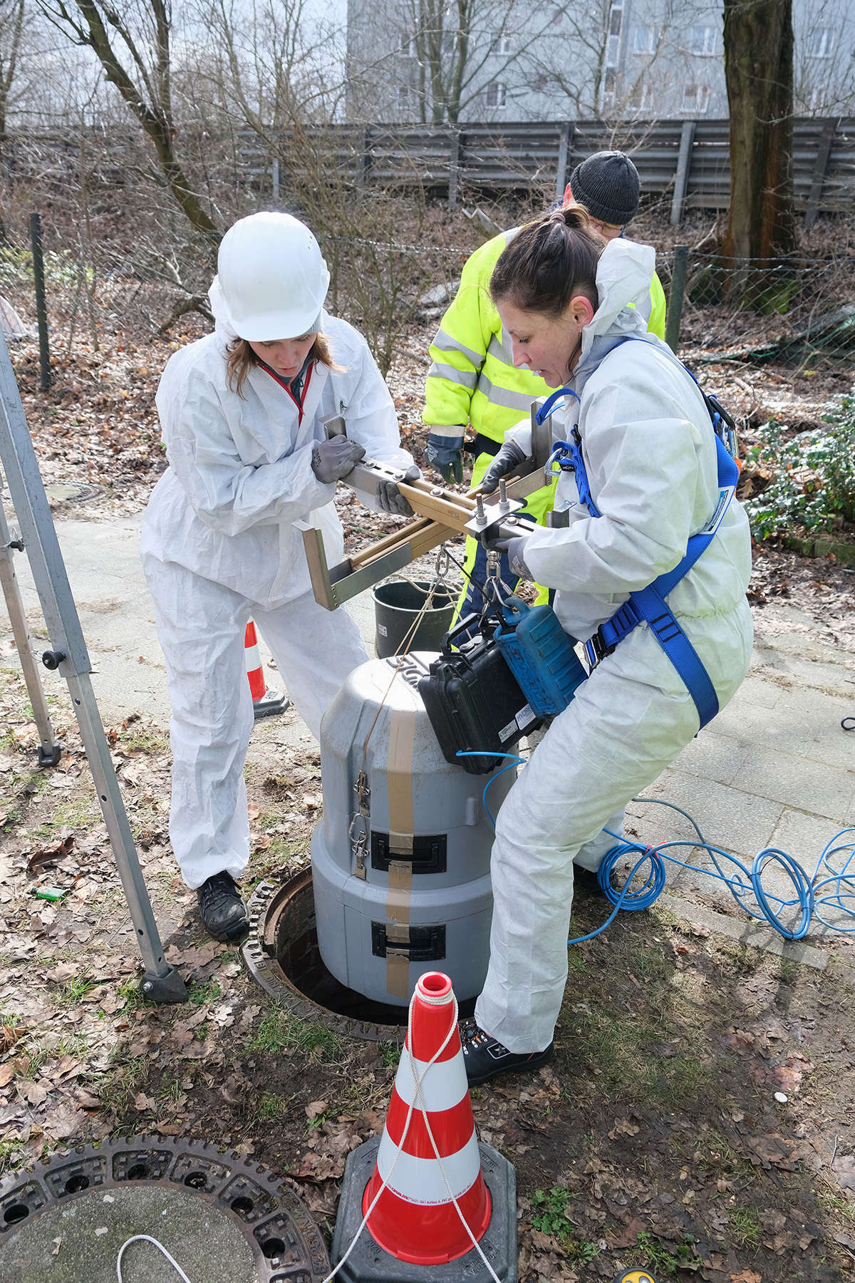 Das KWB übernahm die strategische Planung und Durchführung der Probenahme und konzentrierte sich auf Monitoring und Modellierung des Verbleibs und Transports von PFAS und iPM(T)s in urbanem Abfluss, Oberflächenwasser und Grundwasser. Besonders wichtig war dabei die Quantifizierung von PFAS und iPM(T)s im Regenabfluss. Die Analyse auf bekannte Substanzen erfolgte in den Laboren der BWB, während Forschende der BfG über einen Non-Target-Ansatz die Proben auf Substanzen untersuchten, welche bislang nicht in Monitoringprogrammen integriert sind. Die toxikologische Analyse und Bewertung erfolgte schließlich beim UBA und beim Projektpartner BioDetection Systems (BDS).