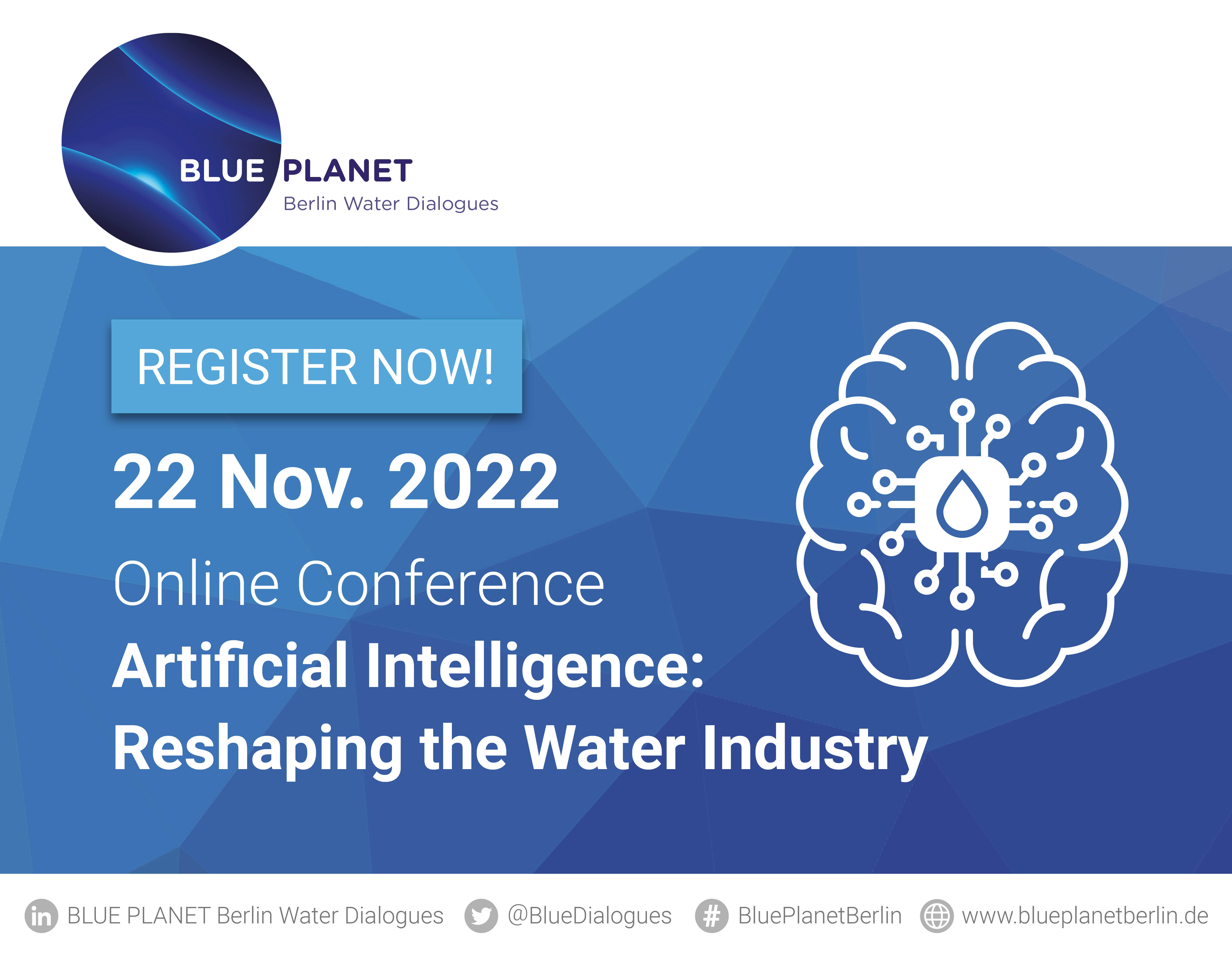 BLUE PLANET is the global networking platform connecting innovative water management stakeholders from research, business and politics. This year’s event focuses on "Artificial Intelligence: Reshaping the Water Industry".